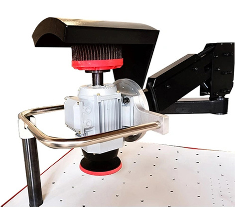 Адзін бок ручнай паліроўкай галавкі абсталяваны шліфавальнымі сродкамі для цяжкай паліроўкі, у той час як іншы бок можа быць абсталяваны галавкамі шчоткаў для адкрыцця, акруглення і апрацоўкі паверхні. Пры неабходнасці таксама можа быць створаны эфект люстэркавай паліроўкі. Вось кручэння на 180 градусаў лёгка замяніць розныя расходныя матэрыялы.