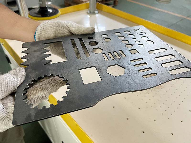 Спецыяльная падушка для стала машыны мае высокую амортызацыю антыслізнай паверхні, якая можа зафіксаваць працоўную частку падчас адборкі і малявання паверхні. Вымацаваць невялікія працоўныя часткі на месцы шляхам інтэграцыі вакуумнай адсорбцыйнай платформы. Мы можам выдаліць буры, створаныя падчас штампавання, рэзкі, лазернай рэзкі, плазменай рэзкі і іншых працэсаў у ўсіх кірунках, дасягнуўшы невялікага эфекту R-дугі на ўсе краі і адтуліны апрацоўкі. Працэс апрацоўкі бяспечны і надзейны, што дазваляе працоўнай частцы дасягнуць ідэальных вынікаў.